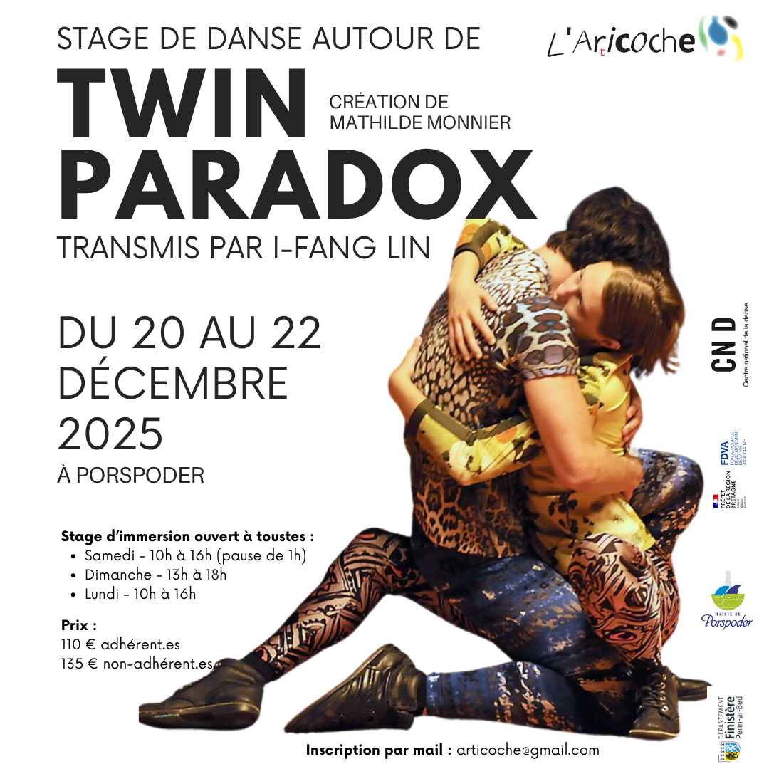Entre décembre 2025 et juin 2026, le groupe amateur/ices de l’Articoche travaillera sur un extrait de la pièce emblématique Twin Paradox, œuvre de Mathilde Monnier, accompagné par la danseuse et chorégraphe I-Fang Lin.