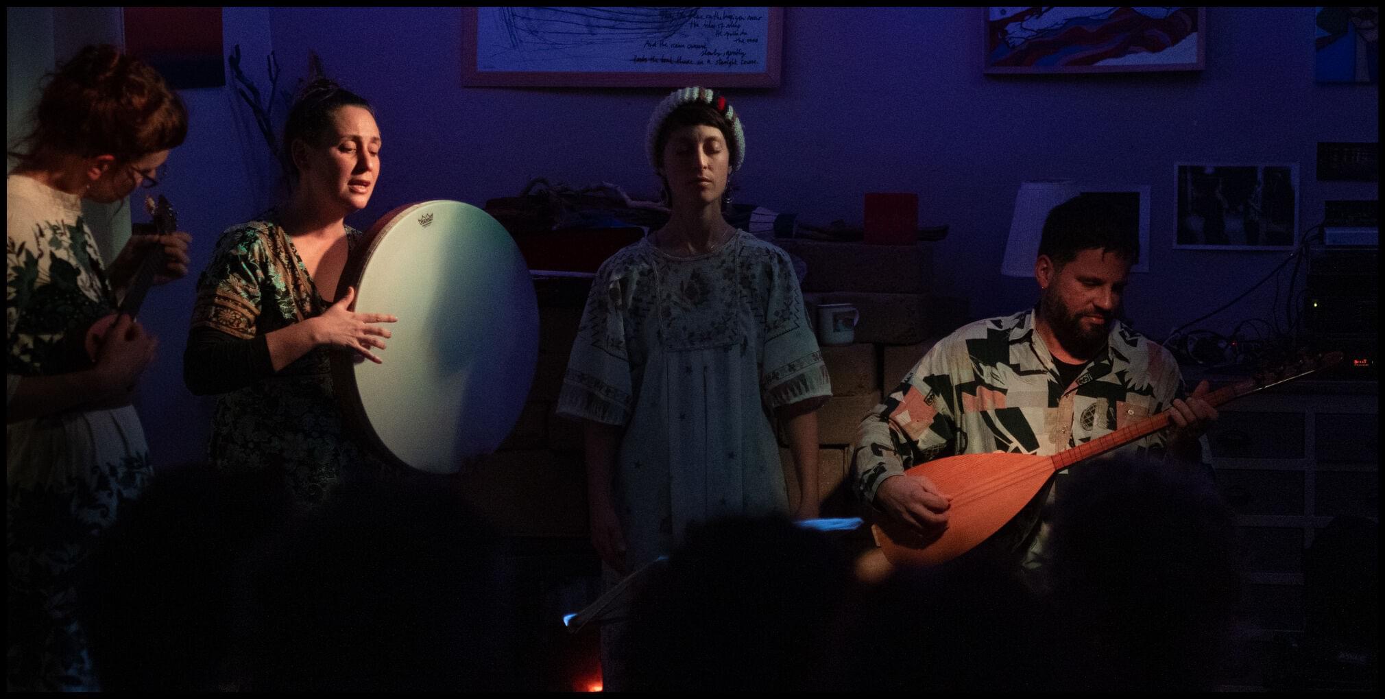 Depuis Douarnenez, Valentine, Cyrielle et Lucie, les trois chanteuses d’Ypnako, tissent leurs voix pour rendre hommage à l’âpre douceur des musiques traditionnelles des confins de la Méditerranée et de la mer Noire. Accompagnées par le son envoûtant du saz de Jonathan, elles égrainent complainte grecque, berceuse turque, chanson d’amour macédonienne et chant de fête bulgare. Le répertoire se construit au fil de l’eau, guidé par le plaisir de faire résonner ensemble ces mélodies anciennes.